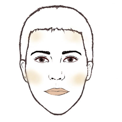 c. With blush brush, contour cheekbones, hairline, and jawbone with “Mad Hot” bronzer.