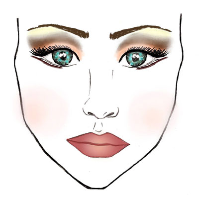 c. Highlight on cheekbone with "Angel" pastel pink blush